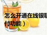 大家好,小活来为大家解答以上的问题。怎么开通在线银联支付,如何开通银联在线支付功能这个很多人还不知道,现在让我们一起来看看吧!1、可 浏览全文>>