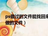 大家好,小活来为大家解答以上的问题。ps做过的文件能找回来吗,ps软件突然关闭 怎么找回原来做的文件这个很多人还不知道,现在让我们一起来 浏览全文>>