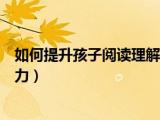 大家好,小活来为大家解答以上的问题。如何提升孩子阅读理解的能力,小学生如何提高阅读理解能力这个很多人还不知道,现在让我们一起来看看吧 浏览全文>>