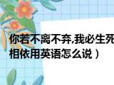 大家好,小活来为大家解答以上的问题。你若不离不弃,我必生死相依的英语,你若不离不弃我必生死相依用英语怎么说这个很多人还不知道,现在让 浏览全文>>