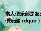 大家好,小活来为大家解答以上的问题。富人俱乐部是怎么玩的,什么是 ldquo 富人俱乐部 rdquo这个很多人还不知道,现在让我们一起来看看吧 浏览全文>>