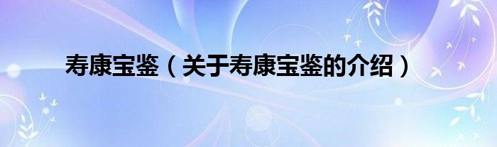 寿康宝鉴(关于寿康宝鉴的介绍)