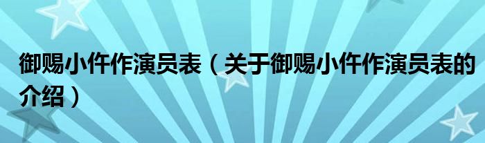 御赐小仵作演员表(关于御赐小仵作演员表的介绍)