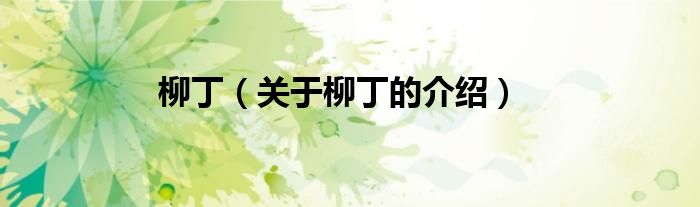 大家好,小方来为大家解答以上的问题。柳丁,关于柳丁的介绍很多人还不知道,现在让我们一起来看看吧!