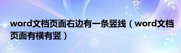 大家好,小活来为大家解答以上的问题。word文档页面右边有一条竖线,word文档页面有横有竖这个很多人还不知道,现在让我们一起来看看吧!