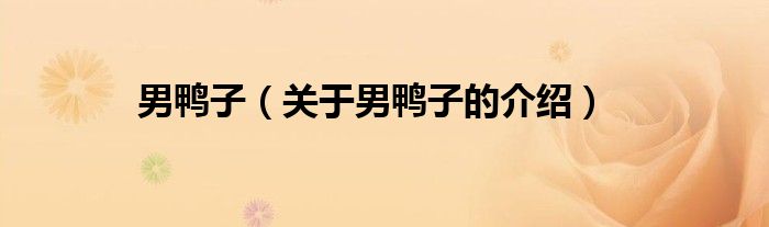 大家好,小活来为大家解答以上的问题。男鸭子,关于男鸭子的介绍很多人还不知道,现在让我们一起来看看吧!