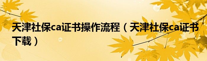 天津社保ca证书操作流程(天津社保ca证书下载)
