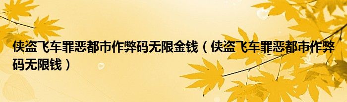 侠盗飞车罪恶都市作弊码无限金钱(侠盗飞车罪恶都市作弊码无限钱)
