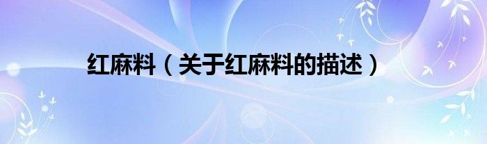 今天来聊聊关于红麻料,关于红麻料的描述的文章,现在就为大家来简单介绍下红麻料,关于红麻料的描述,希望对各位小伙伴们有所帮助。