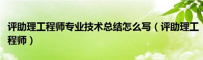 评助理工程师专业技术总结怎么写(评助理工程师)