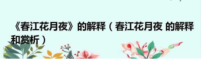 《春江花月夜》的解释(春江花月夜 的解释和赏析)
