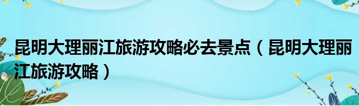 导读 大家好,小活来为大家解答以上的问题。昆明大理丽江旅游攻略必去景点,昆明大理丽江旅游攻略这个很多人还不知道,现在让我们一起来看看吧!1