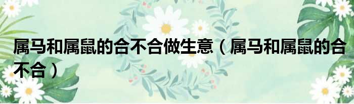 属马和属鼠的合不合做生意(属马和属鼠的合不合)