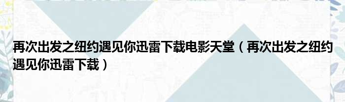 导读 大家好,小活来为大家解答以上的问题。再次出发之纽约遇见你迅雷下载电影天堂,再次出发之纽约遇见你迅雷下载这个很多人还不知道,现在让我们