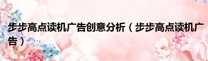大家好,小活来为大家解答以上的问题。步步高点读机广告创意分析,步步高点读机广告这个很多人还不知道,现在让我们一起来看看吧!