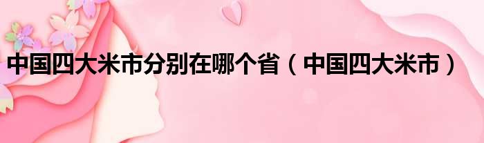 大家好,小活来为大家解答以上的问题。中国四大米市分别在哪个省,中国四大米市这个很多人还不知道,现在让我们一起来看看吧!