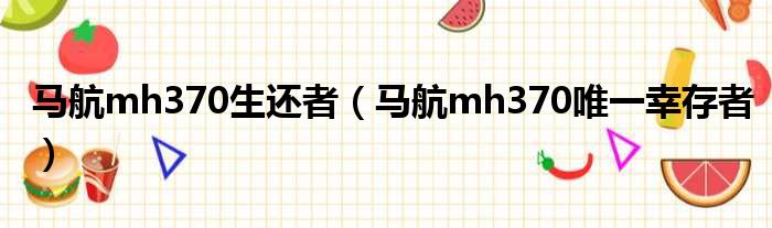 导读 大家好,小活来为大家解答以上的问题。马航mh370生还者,马航mh370唯一幸存者这个很多人还不知道,现在让我们一起来看看吧!1、马航MH370是飞