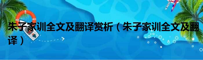朱子家训全文及翻译赏析(朱子家训全文及翻译)