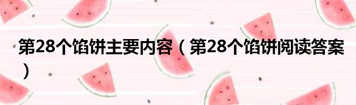 大家好,小活来为大家解答以上的问题。第28个馅饼主要内容,第28个馅饼阅读答案这个很多人还不知道,现在让我们一起来看看吧!