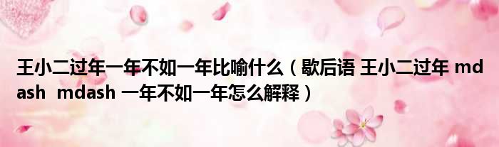 王小二过年一年不如一年比喻什么(歇后语 王小二过年 mdash mdash 一年不如一年怎么解释)