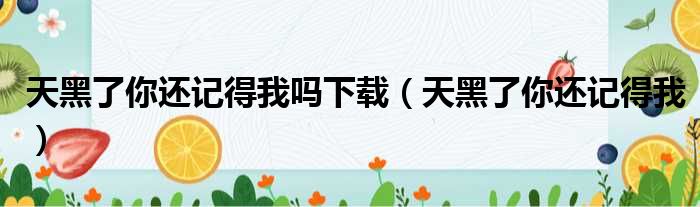 天黑了你还记得我吗下载(天黑了你还记得我)
