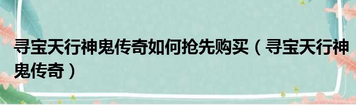 寻宝天行神鬼传奇如何抢先购买(寻宝天行神鬼传奇)