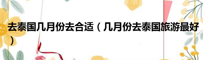 去泰国几月份去合适(几月份去泰国旅游最好)