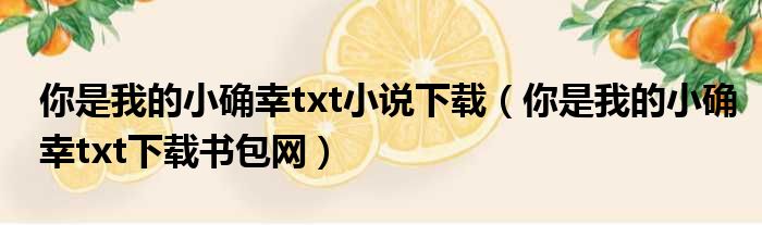 导读 大家好,小活来为大家解答以上的问题。你是我的小确幸txt小说下载,你是我的小确幸txt下载书包网这个很多人还不知道,现在让我们一起来看看吧