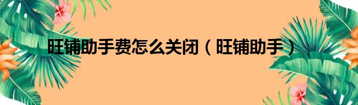 大家好,小活来为大家解答以上的问题。旺铺助手费怎么关闭,旺铺助手这个很多人还不知道,现在让我们一起来看看吧!