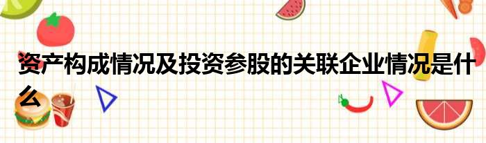 大家好,小活来为大家解答以上的问题。资产构成情况及投资参股的关联企业情况是什么这个很多人还不知道,现在让我们一起来看看吧!