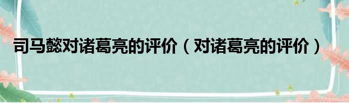 司马懿对诸葛亮的评价(对诸葛亮的评价)