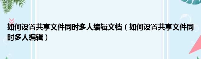 如何设置共享文件同时多人编辑文档(如何设置共享文件同时多人编辑)