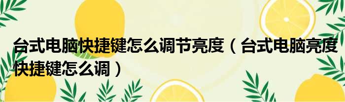 台式电脑快捷键怎么调节亮度(台式电脑亮度快捷键怎么调)
