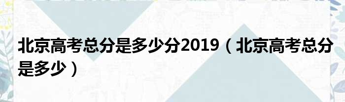 北京高考总分是多少分2019(北京高考总分是多少)
