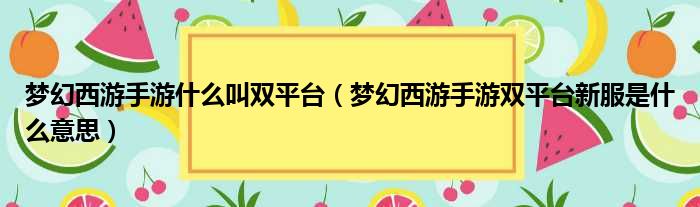 梦幻西游手游什么叫双平台(梦幻西游手游双平台新服是什么意思)