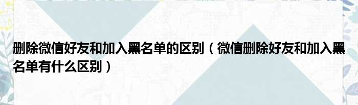 删除微信好友和加入黑名单的区别(微信删除好友和加入黑名单有什么区别)
