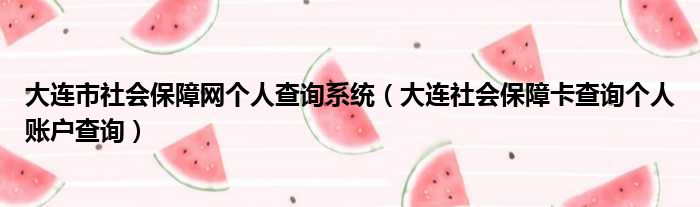 大连市社会保障网个人查询系统(大连社会保障卡查询个人账户查询)