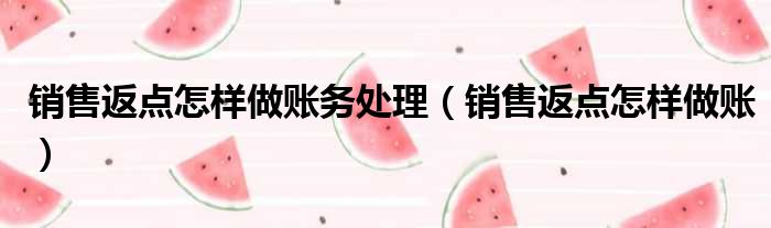 大家好,小活来为大家解答以上的问题。销售返点怎样做账务处理,销售返点怎样做账这个很多人还不知道,现在让我们一起来看看吧!