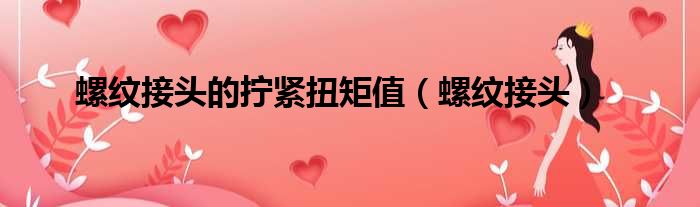 导读 大家好,小活来为大家解答以上的问题。螺纹接头的拧紧扭矩值,螺纹接头这个很多人还不知道,现在让我们一起来看看吧!1、1分的英制管螺纹即1