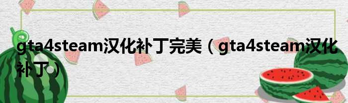 gta4steam汉化补丁完美(gta4steam汉化补丁)