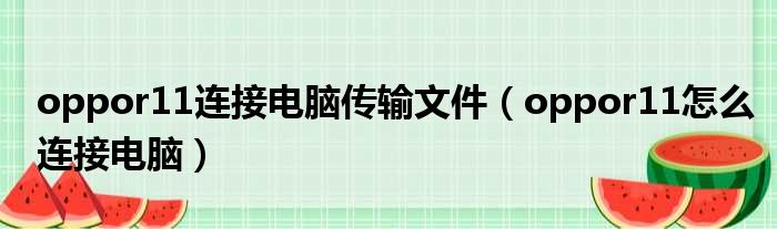 oppor11连接电脑传输文件(oppor11怎么连接电脑)