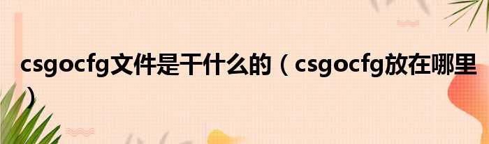 csgocfg文件是干什么的(csgocfg放在哪里)