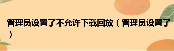 大家好,小活来为大家解答以上的问题。管理员设置了不允许下载回放,管理员设置了这个很多人还不知道,现在让我们一起来看看吧!