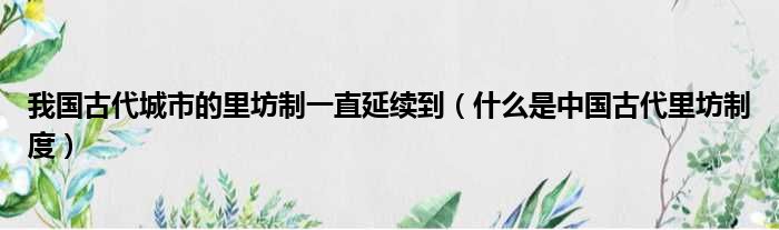 我国古代城市的里坊制一直延续到(什么是中国古代里坊制度)