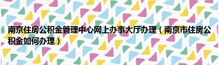 南京住房公积金管理中心网上办事大厅办理(南京市住房公积金如何办理)