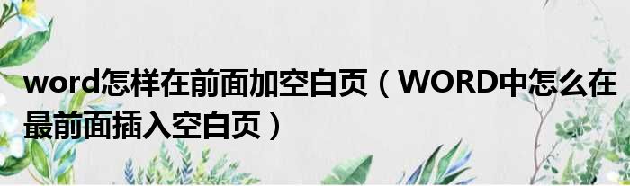 word怎样在前面加空白页(WORD中怎么在最前面插入空白页)