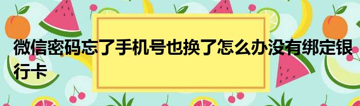微信密码忘了手机号也换了怎么办没有绑定银行卡