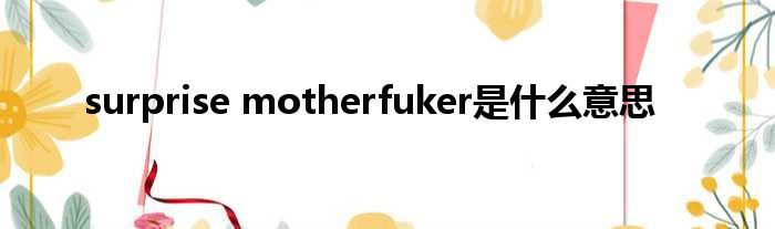1、“surprise-mother-fucker”意思:给母亲的惊喜surprise:n. 惊奇,诧异;突然袭击vt. 使惊奇;奇袭adj. 令人惊讶的2、mother:n. 母亲;大娘;女修道院院长vt. 生下;养育;像母亲般关怀或照管adj. 母亲的;出生地的3、fucker:n. 笨蛋,傻瓜扩展资料fucker的其他用法单独使用可以作为无任何意义的语气词。