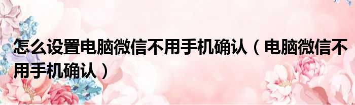 怎么设置电脑微信不用手机确认(电脑微信不用手机确认)