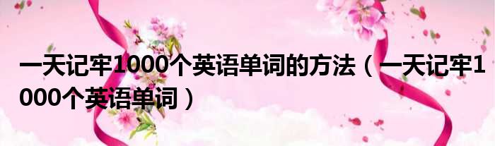 一天记牢1000个英语单词的方法(一天记牢1000个英语单词)